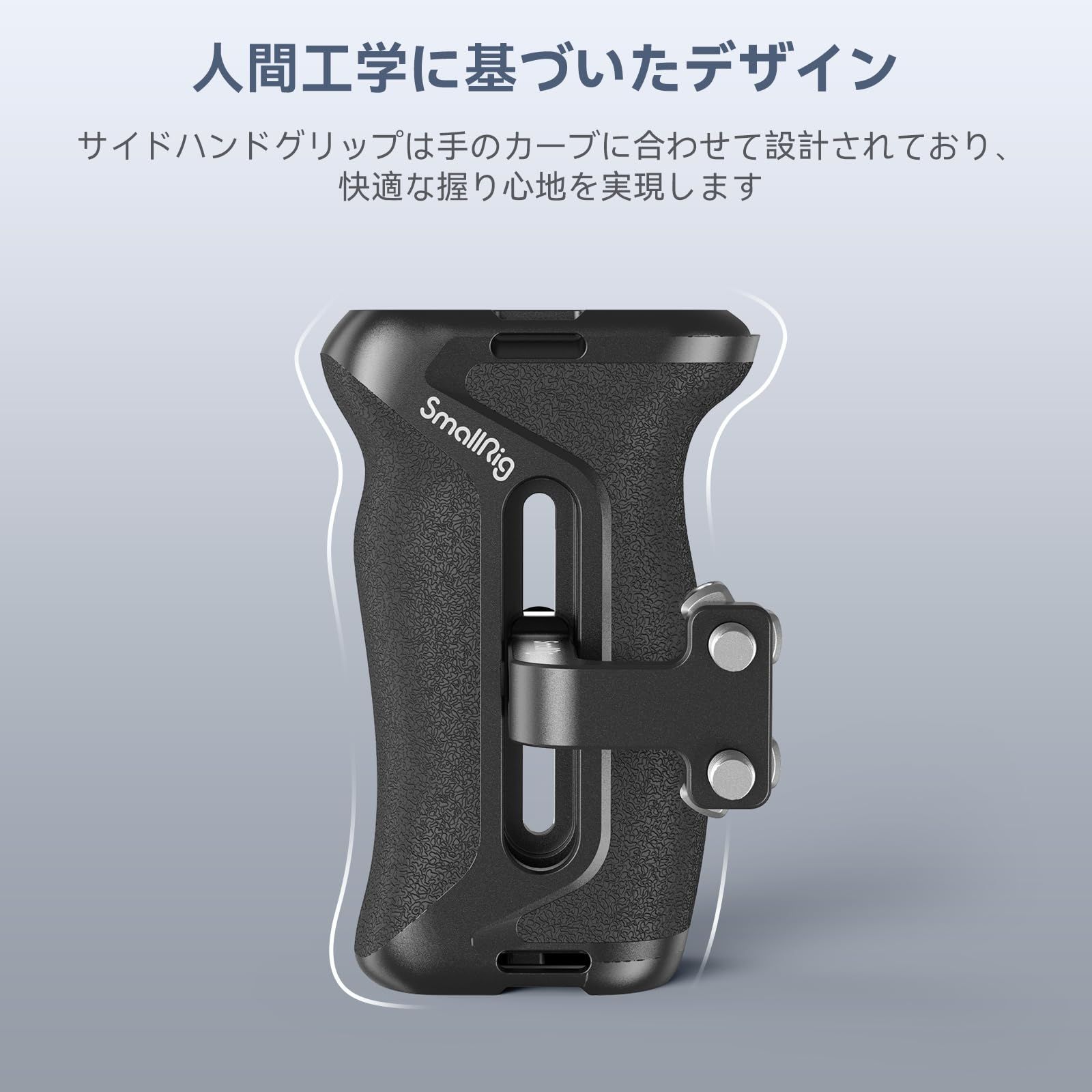 【人間工学】サイドハンドルは手持ちのカーブに設計されて、ハンドルは上下調整可能36mmで、カメラのサイズに合わせて最適なグリップ位置に調整でき、快適な撮影体験ができます。