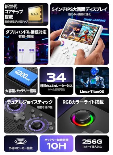 H 5 ポータブルゲーム機 5インチIPS大画面 Linux TitanOS搭載 64 G|128 G対応 ダブルジョイスティック RGBライト付き 4000 mAhバッテリー 34種類のシミュレーター対応 OTG有線 無線コントロー 4 f 7379 e 8