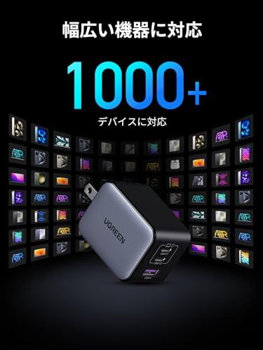 UGREEN NexodeX 当社比最小 65 W充電器 USB C 2とUSB A 1 新生代GaNInfinity?チップ 独自Airpyra技術 PD 3 0 QC 4 対応 自宅 出張 旅行用 ノートPC iPad iphone 17 16 f 44 6 bd 2