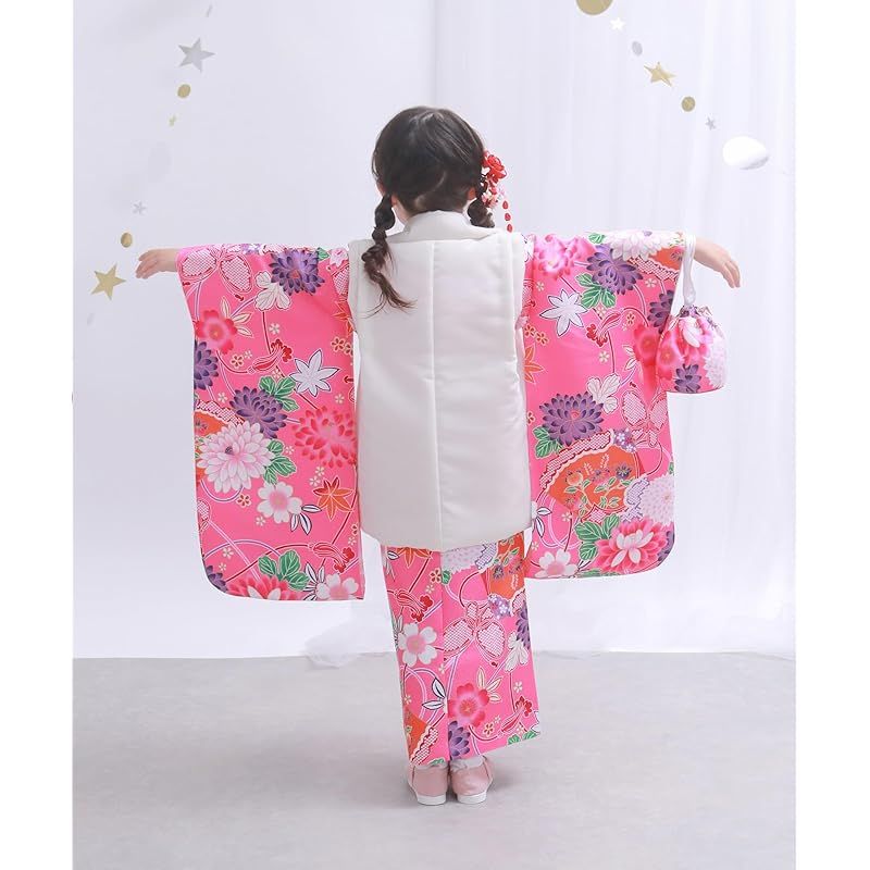 商品名:【新品】 [KYOETSU] [キョウエツ] 自宅で簡単着付け 七五三 3歳 女の子 着物 セパレート 二部式 セット 被布 小物 フルセット 753 4点セット (5.夢見桃紫花, 90-100cm)
