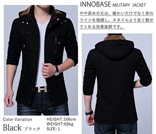 InnoBase メンズ ジャケット コート ミリタリージャケット マウンテンパーカー 裏ボア ジャンパー ブルゾン ハーフ丈 フード付き 着脱可 防寒 防風 厚手 カジュアル 秋 冬 アウトドア おしゃれ 彡 baf 62 fc 6