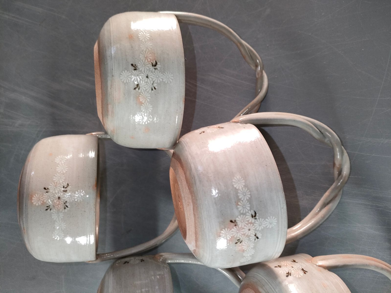 S 8 7 萩焼 梅田陶楽 造 袴腰手付向付5客 和食器 懐石道具