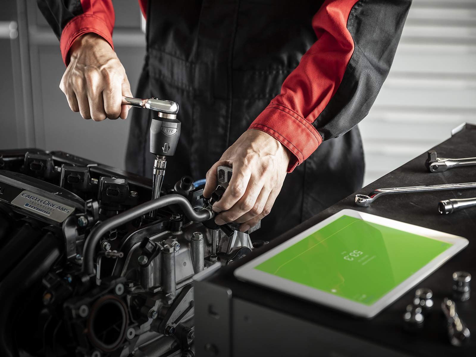 ラチェットハンドルやドライバ型ハンドルなどのお手持ちの工具に装着すれば、高精度なデジタルトルクレンチに