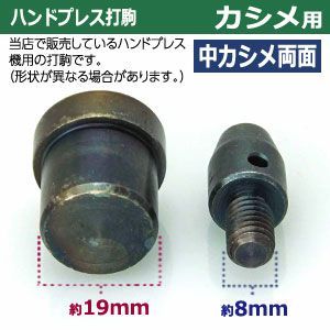 ハンドプレス 打駒 中 カシメ 両面 7 mm 中カシメ両面用 上駒下駒 入 上駒 幅13 高30 8 軸幅8 下駒 幅22 高24 0 軸幅19 鉄製 焼き加工 両面カシメ 頭 ウチコマ ハンドプレス治具 上
