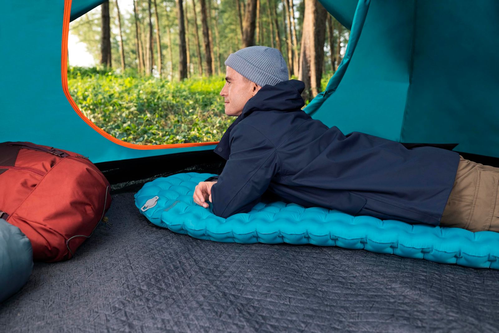 【ポンプサック】付属のポンプサックは、薄型軽量で簡単にパッドに空気を注入することができます。重い空気入れを持ち運ぶ必要がありません。