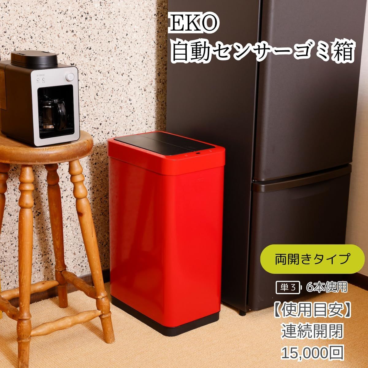 45 L レッド センサービン ふた付き ファントムX インナーボックス無し 自動開閉 ゴミ箱 イーケーオー EKO
