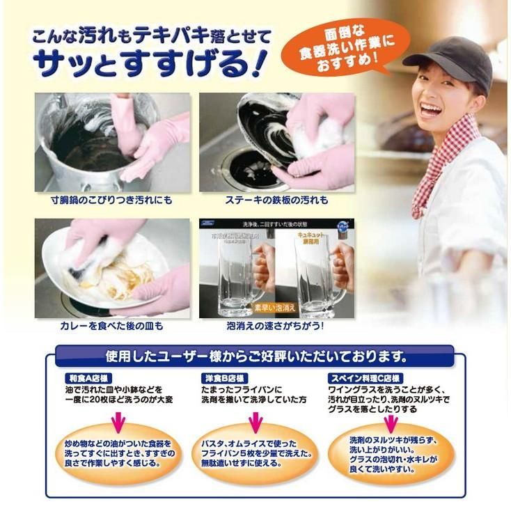 ●洗い始めから泡がしっかりたち、テキパキ洗えるのに、すすいだ瞬間、素早い泡消え!手洗いで大量の食器、調理器具を短時間で一気に洗います!