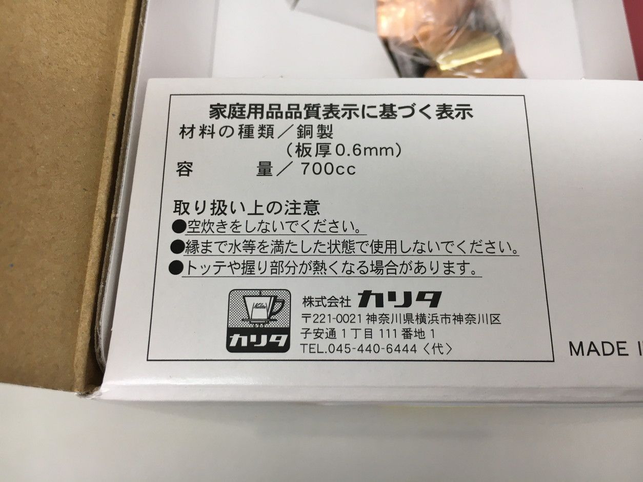 カリタ 燕 Kalita TSUBAME ドリップポットスリム 700 CUW Made in 銅製