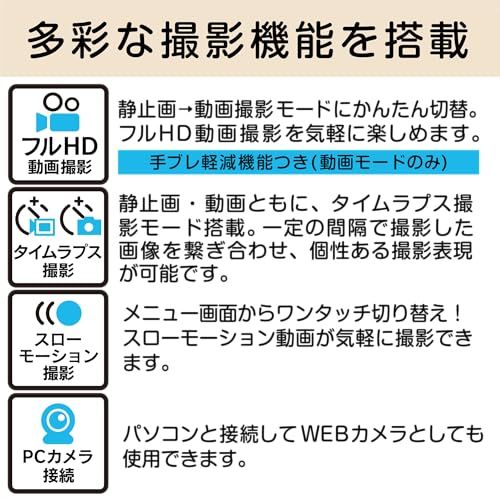 ケンコー Kenko コンパクトデジタルカメラ KC ZM 13 WH 光学5倍ズーム 有効画素数約1600万画素 2 7インチIPSタッチパネルモニター 自撮り用サブカメラ コンパクトデザイン ホワイト 446782 p 59 d 9 f 491