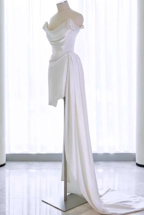 オフショルダー ウェディングドレス ミニ丈 ドレープ 韓国