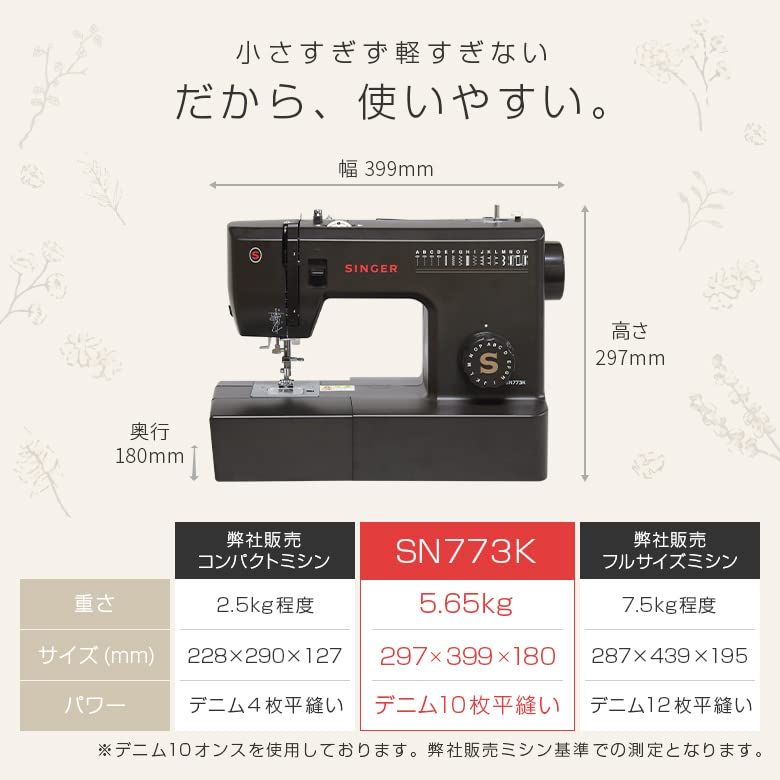 SINGER シンガー 電動ミシン フットコントローラー標準装備 SN 773 K 黒p d 8 7 15 f