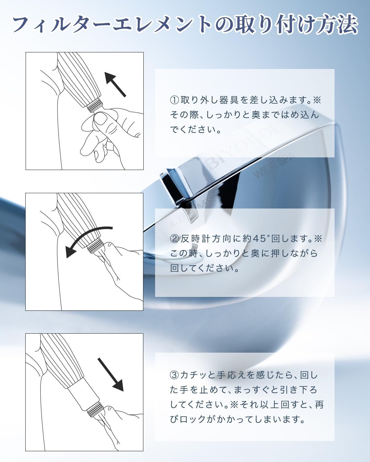 ✅【BIYOUDEオリジナル】自社開発塩素除去シャワーヘッド、専用脱塩素フィルター搭載!水道水中の塩素や不純物を除去し、水質を弱酸性に調整,保湿成分を効果的に補給することで、肌や髪の乾燥を防ぎます。シャワー後の「潤い持続感」を実感できる新次元スキンケア,ご家族全員が安心して使って頂けます。