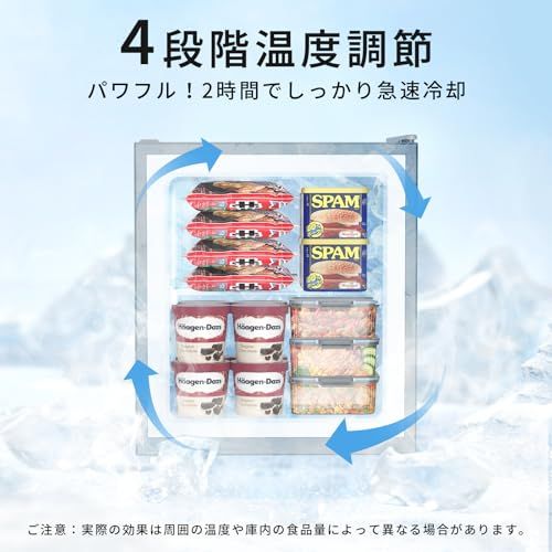 【4段階の温度調節機能】温度は-14-12、-16-14、-19-16、-22-19の4段階から調整可能。保存する食材に応じて最適な温度を選ぶことができるので、冷凍食品やアイスクリーム、肉類など、それぞれに合った環境でしっかり鮮度をキープ。食材の美味しさと品質を長く保てます。