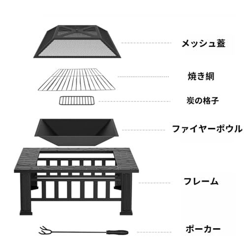 NiceTouch ファイヤーピット 焚き火台 BBQコンロ バーベキューグリル 焼肉 バーベキュー テーブル 炊き火台 家庭用 庭 囲炉裏風 1台多役 po 91 a 2 caf 4