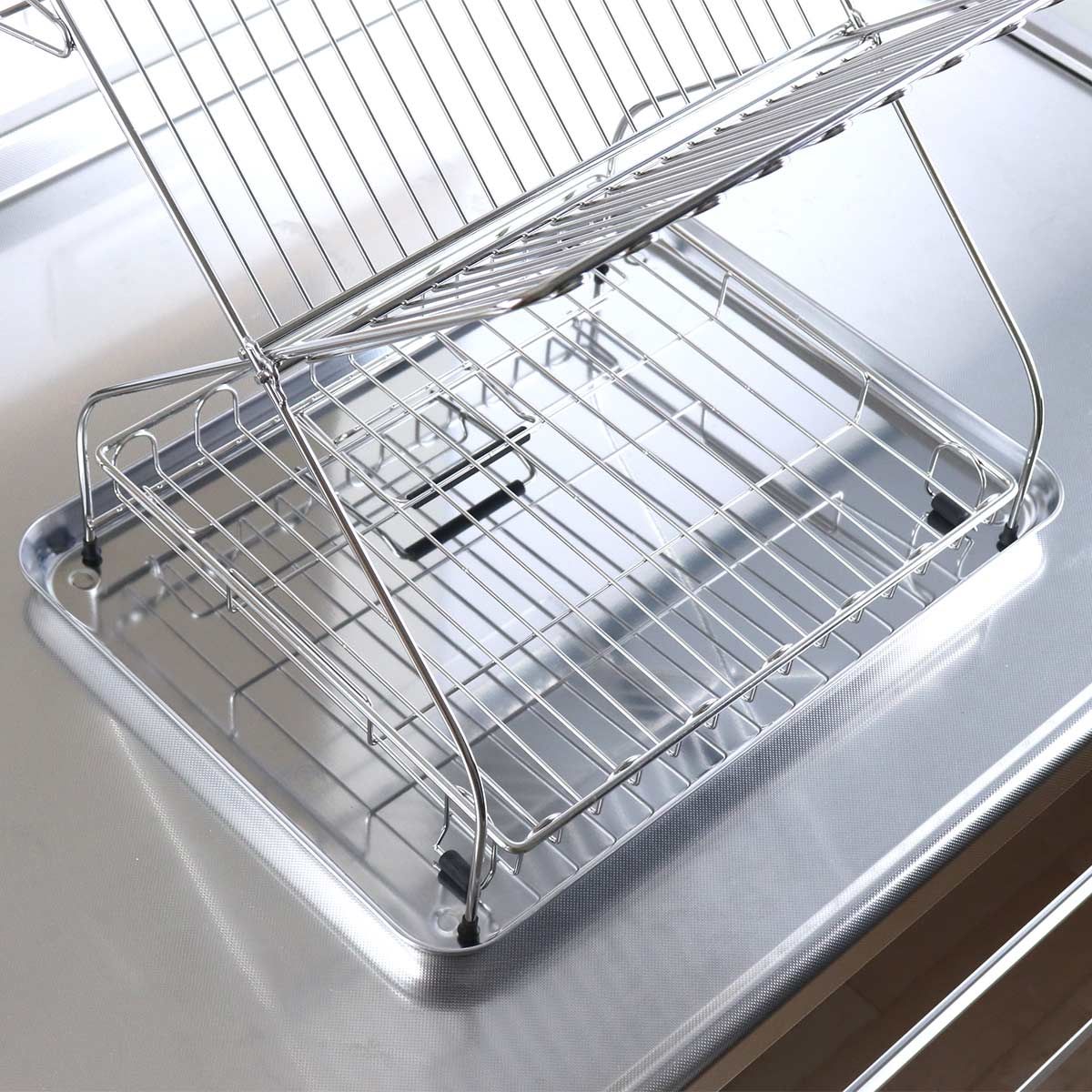 水切りラック 浜内千波のたためる水切り 場所取らず 幅43 5 cm 2段 箸立て付き 折りたたみ ステンレス シンク上 Chinami 水切りカゴ 水切りかご コンパクト 水切り 大容量 ステンレス水切り 食器洗い 乾燥 シンクサイド