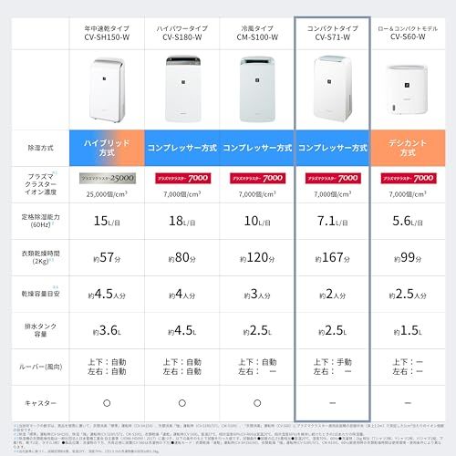 シャープ 衣類乾燥 除湿機 CV S 71 W コンプレッサー 方式 7 1 L 日 コンパクトタイプ プラズマクラスター7000 省エネ 部屋干し 消臭p d 68 e 838