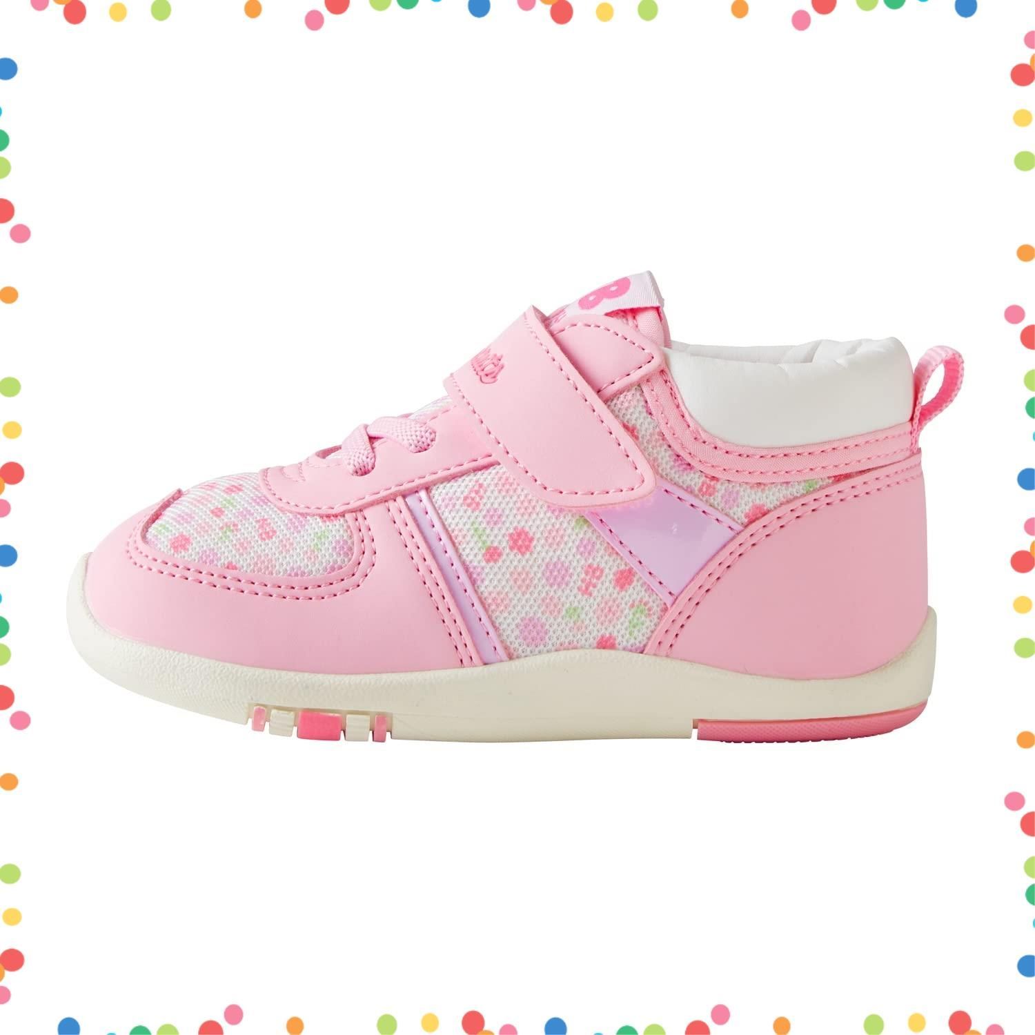 スポーティなメッシュ素材のシューズは通気性抜群! カップインソール付きでお手入れも簡単で清潔に保てるので、 保育園や幼稚園の通園用にもぴったり! 白はシンプルさのなかに目を引く爽やかな赤×紺のワンポイントラインがポイント! 男の子はもちろん、女の子もカッコかわいく履いていただけます。 ピンクは女の子に支持が高いキュートなお花柄!きっとお子様も喜んで履いてくれますよ。 マルチカラーはユニセックスなデザインで、コーディネートのアクセントになります。 セカンドシューズにもミキハウスのこだわりのクオリティがたくさん詰まっています。