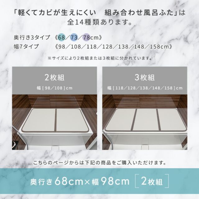 風呂ふた 68 98 組 完成品 お風呂のふた おしゃれ 丈夫 軽い 節電 省エネ 電気代の節約 風呂蓋 保温 さめにくい 風呂フタ 防カビ 汚れにくい 清潔 半身浴 バス用品 風呂グッズ 奥行68 cm 幅98 厚さ1