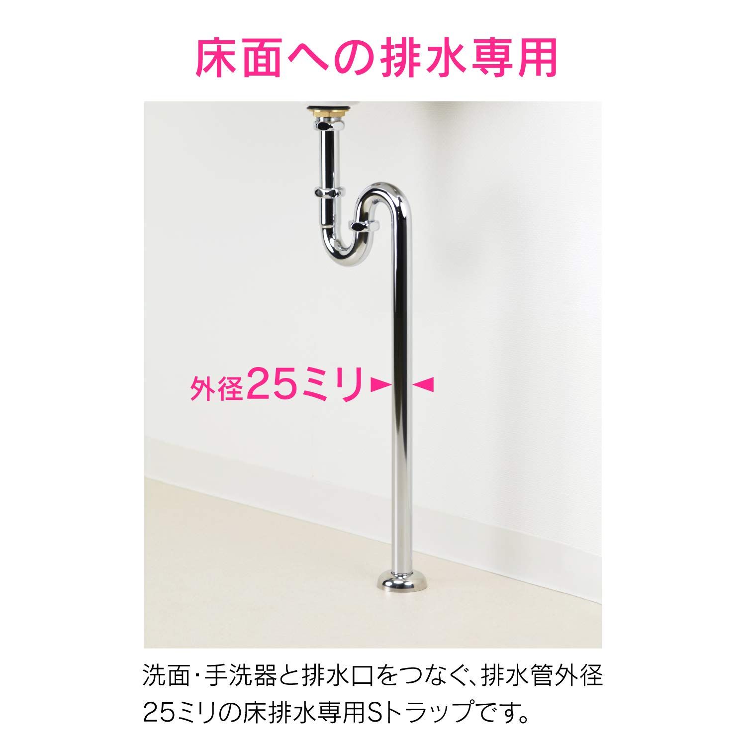 洗面・手洗器と排水口をつなぐ、排水管外径25ミリの床排水専用Sトラップ