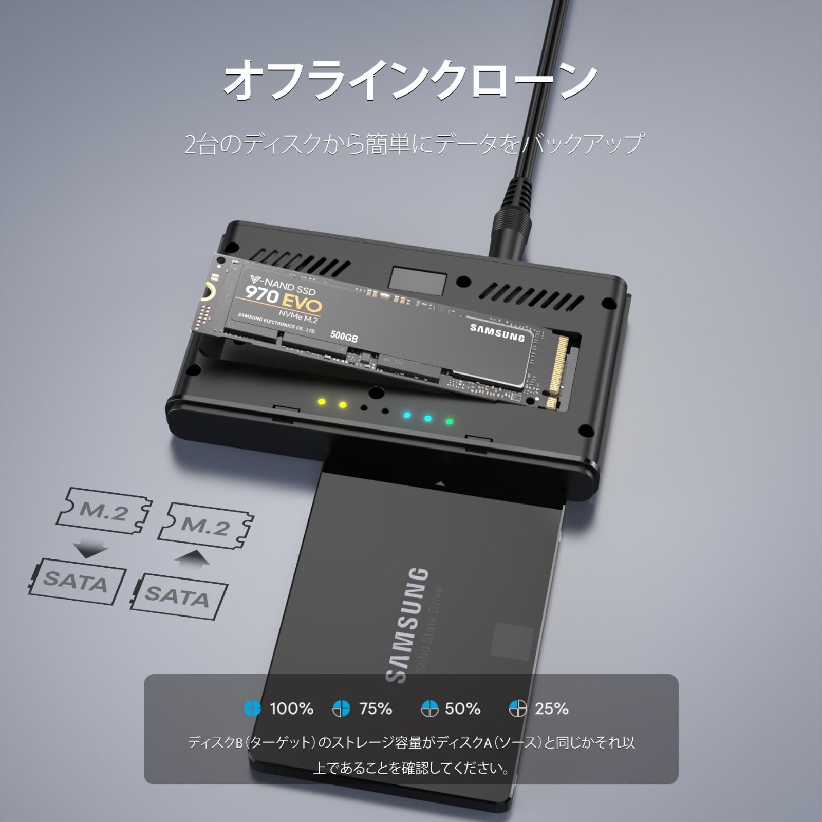 数量 M 2対応 SSD Mキー B と2242 2260 2280 SATA 2 5 3 5インチ クローン オフラインコピー機能付き 10 Gbps高速データ転送 Gen USB Type C A スタンド 両対応 HDD