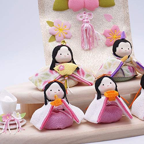 季節のインテリアとして手軽にお飾り頂けるコンパクトなおひなさま、 愛らしいお顔の親王と官女をナチュラルな木製台と組み合わせた5人飾りです