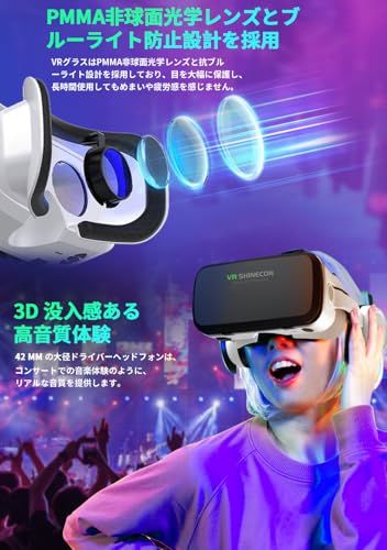令和8年bluetooth 版 OLANSOR VRゴーグル VRヘッドセット VRヘッドマウントディスプレイ ヘッドホン付き ピント調節可5.5-7.2インチスマホ対応 5.5-7.2インチスマホ対応 3 Dグラス 非球面光学レンズ 装着感 29 afab 8 e