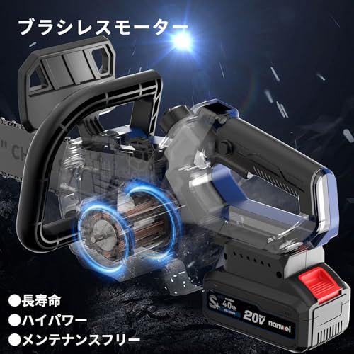 NANWEI チェーンソー充電式 12インチ ダイヤル調節自動給油式 ブレーキ機能付きバッフル 工具レス調整 電動チェーンソー ブラシレスモーター 電動のこぎり 軽量 伐採 枝払い 枝打ち 薪作り 庭木の剪定 電動ノコギリ マキタ18 47707 e 3