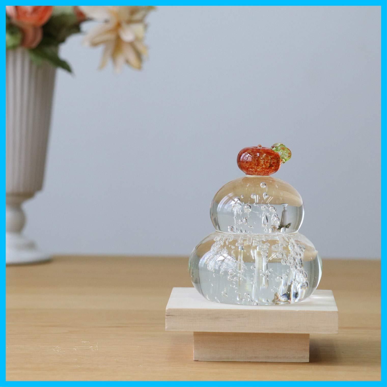 商品 オーナメント 粋工房xアデリア 福重ね鏡餅 置物 橙 ガラス 鏡餅 木台付 ハンドメイド 化粧箱入 アデリア 正月 正月飾り F 47143
