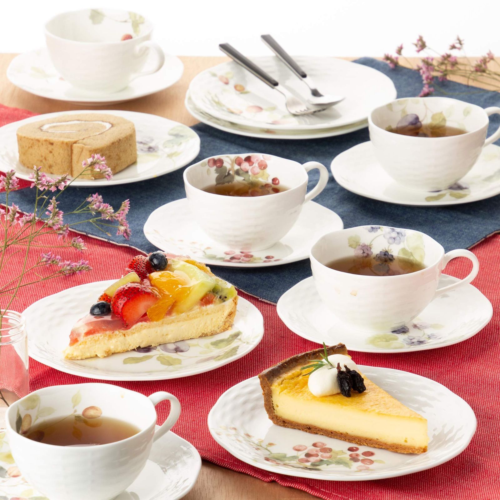 ティー レリーフ コーヒー おしゃれ かわいい 兼用 5柄セット ベリー柄 電子レンジ温め 210 cc 食洗機対応 ルーシーガーデン セット ギフトボックス付き ソーサー カップ 96010 23067 P NARUMI ナルミ