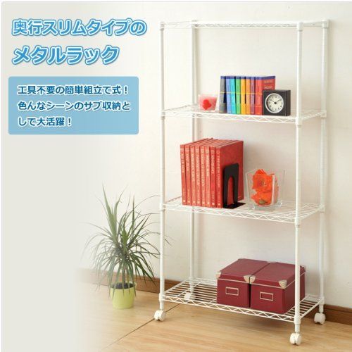 ●スリムタイプのメタルシェルフ●工具不要の簡単組立て式●キャスター付で移動も簡単●色んなシーンのサブ収納として大活躍●組立品(組立時間:約20-30分)