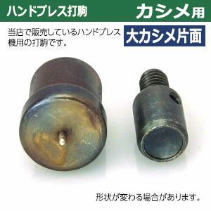 ハンドプレス 打駒 大カシメ 片面 9 mm 大カシメ片面用 上駒下駒 入 上駒 幅13 高31 0 軸幅8 下駒 幅22 高30 3 軸幅19 鉄製 焼き加工 大きいカシメ 片面カシメ 大 頭 ウチコマ ハンドプレ