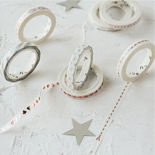 箔押しが施されたマスキングテープです。5mmと細身なのでラインのデコレーションにぴったりです。【検索ハッシュタグ】#マスキングテープ#マステ#ますて#テープ#キリトリ線