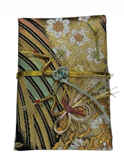 着物/帯から作られたご祝儀袋です水引もイメージに合わせて仕上げました