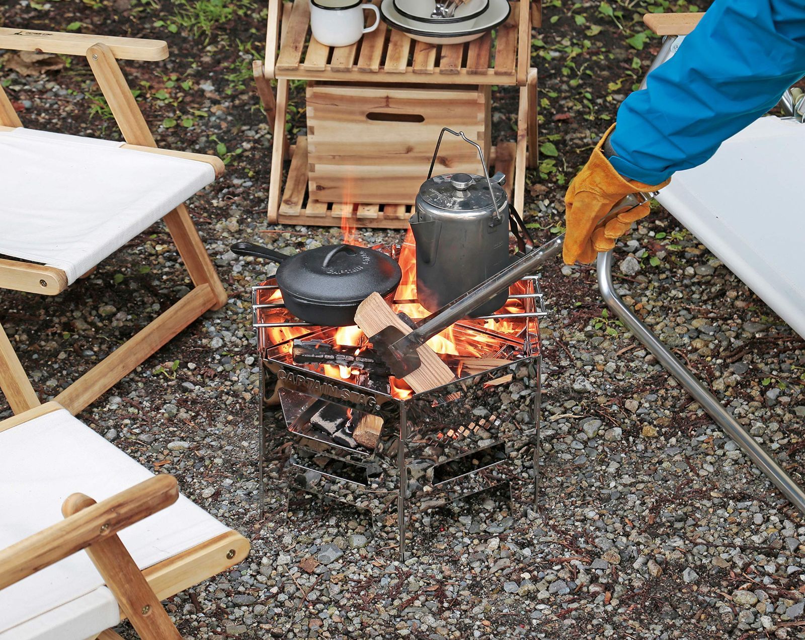 キャプテンスタッグ(CAPTAIN STAG) バーベキューコンロ 焚火台 ダッチオーブン 煮炊き 1台4役 ヘキサステンレス カマドグリル 継ぎ足し口・ゴトク・バッグ付き UG-73 シルバー 組立サイズ:(約)幅450×奥行390×高さ260mm