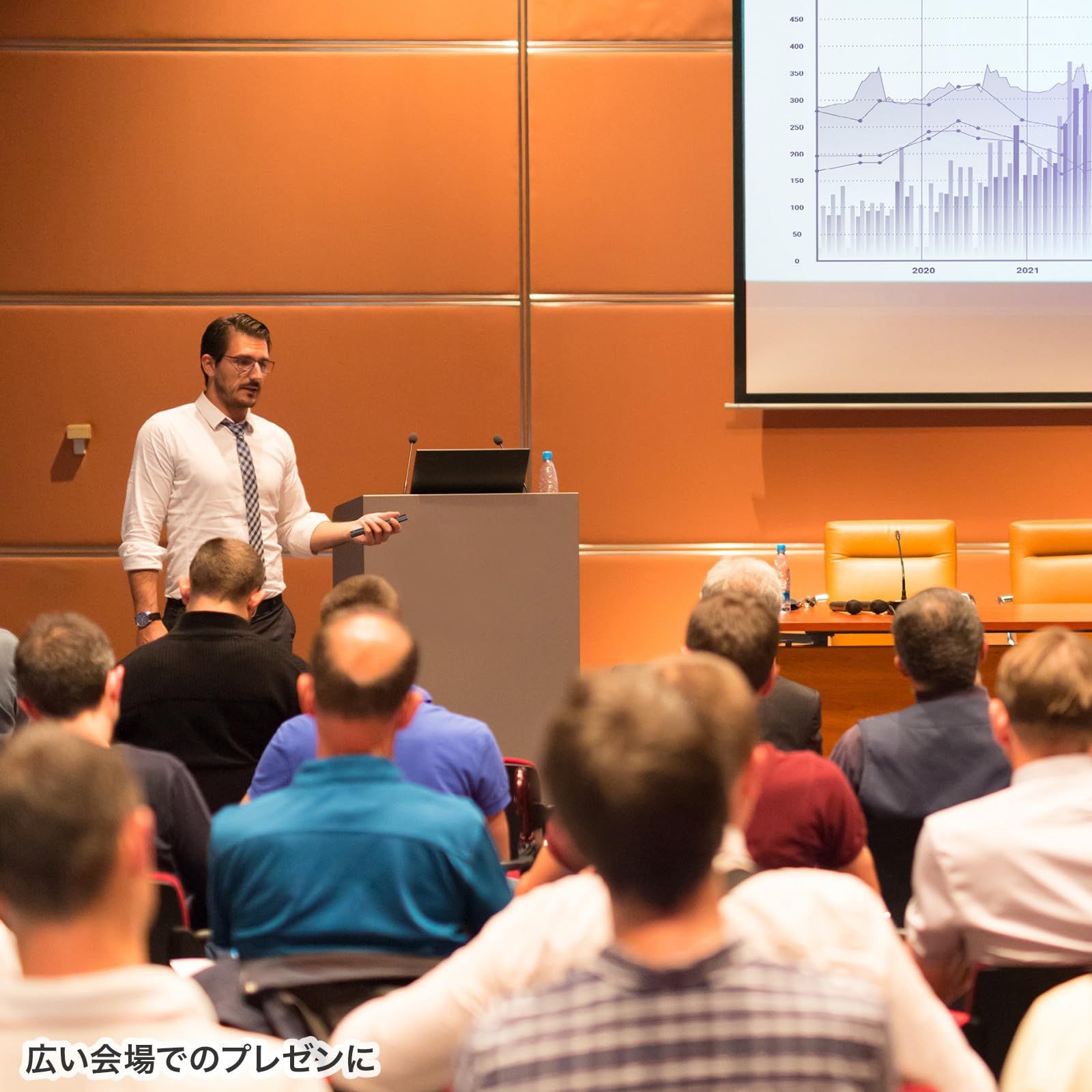 ワイヤレスでページ操作が可能なので、手で持ったまま操作ができ歩きながらのプレゼンに最適です。