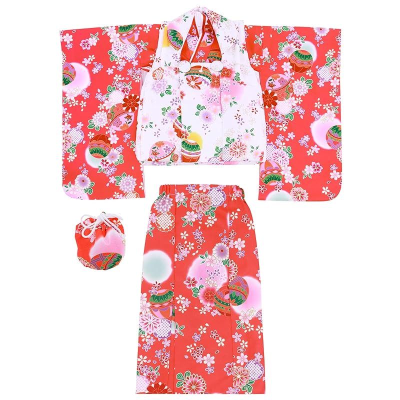 KYOETSU キョウエツ 自宅で簡単着付け 七五三 3歳 女の子 着物 セパレート 二部式 セット 被布 小物 フルセット 753 4点セット 1 紅の花舞 90 100 cm 0