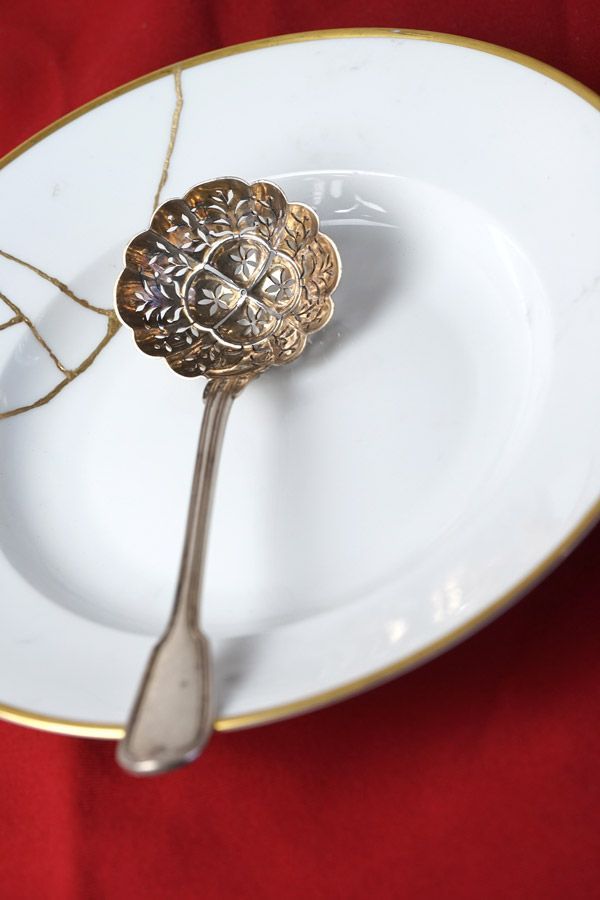 フランスから届いた、ピアス加工(透かし彫り)が美しい大型のシフタースプーンです。