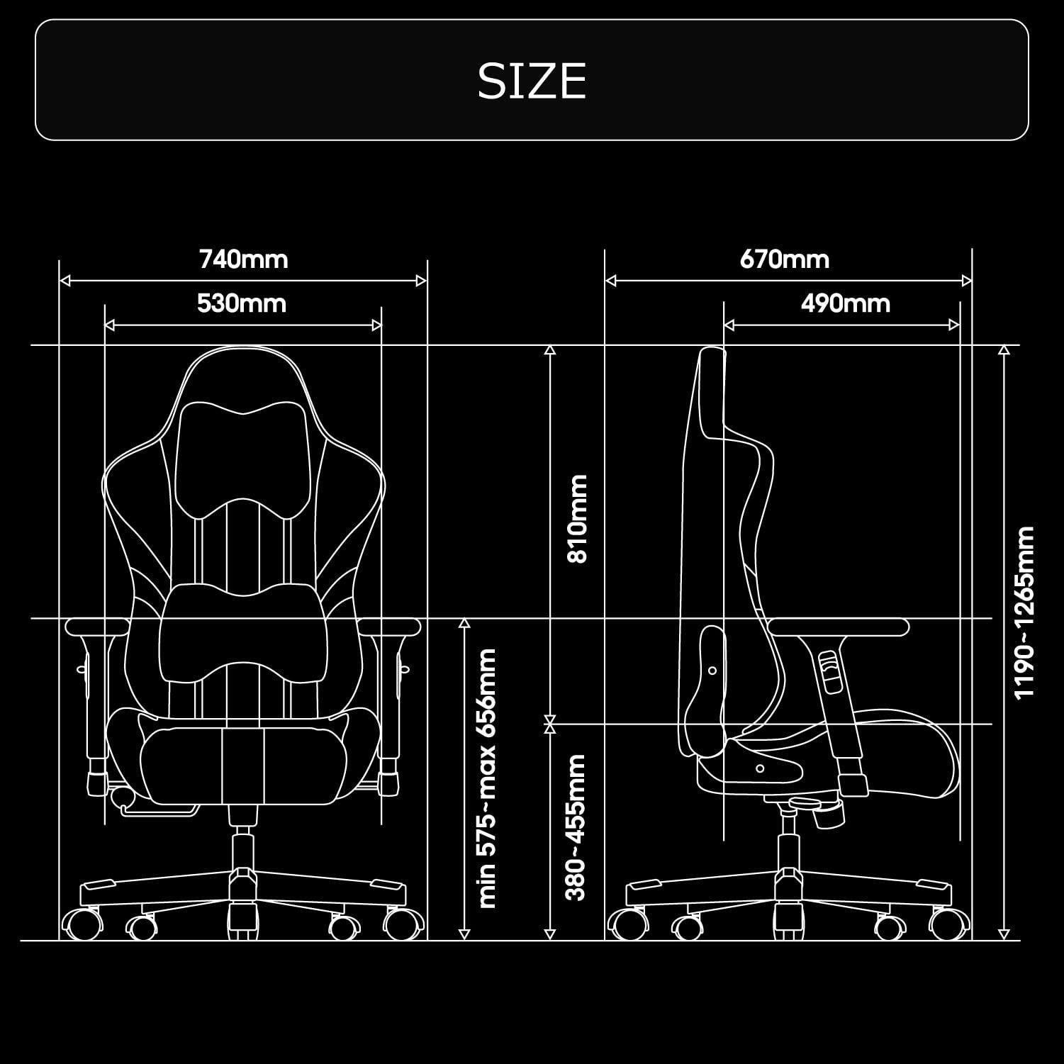座面高:38~45.5cm(推奨身長:150~181cm)