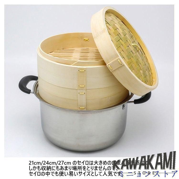竹 せいろ 中華せいろ 21 cm 24 27 竹セイロ 鍋セット せいろ身 2 ふた 1 ステンレス鍋 IH対応 蒸籠 セイロ