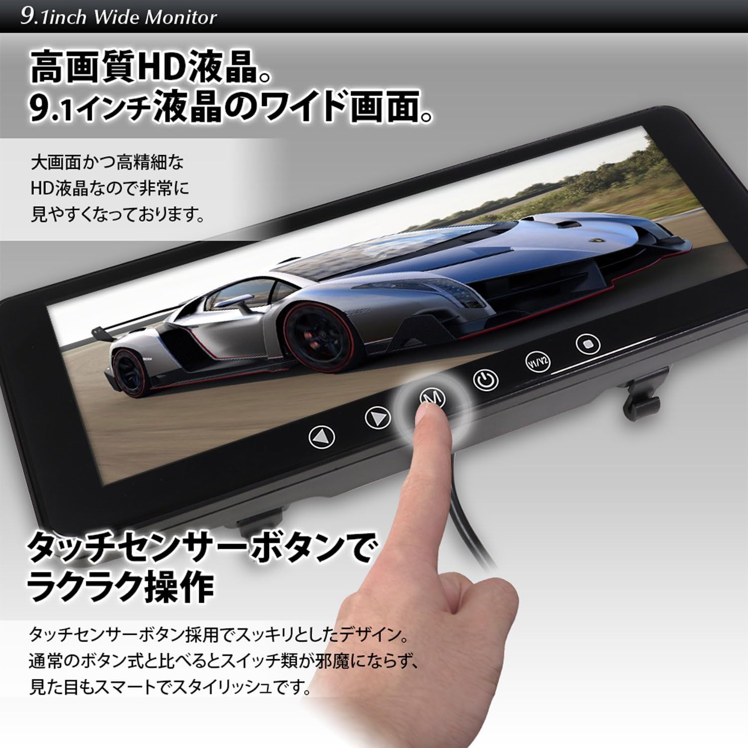 9.1インチのワイド液晶を採用したルームミラーモニターです。