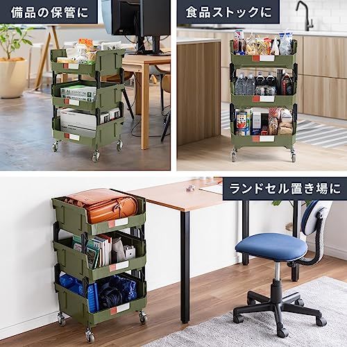 迅速に発送 サンワダイレクト キッチンワゴン ツールワゴン 3段 キャスター付き 耐荷重120 kg ボックスの取り外し カーキ 100 CART 021 25665 f 15