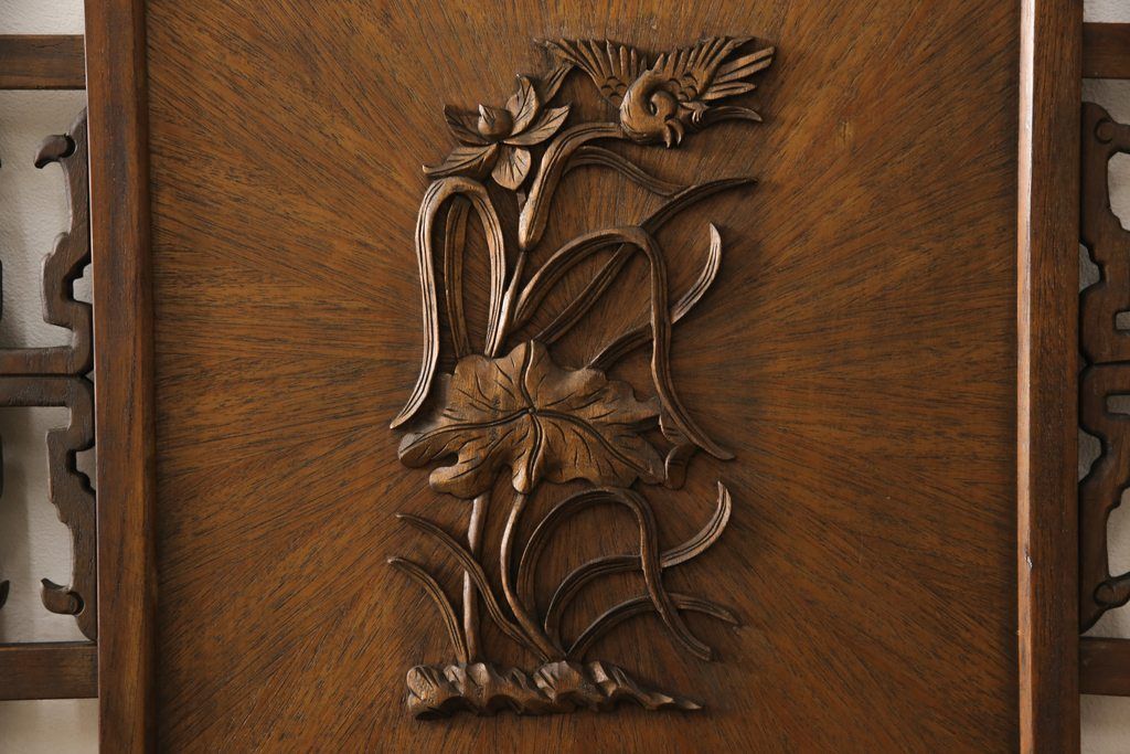 四連衝立て 和製ビンテージ 象嵌 彫刻 R 054822