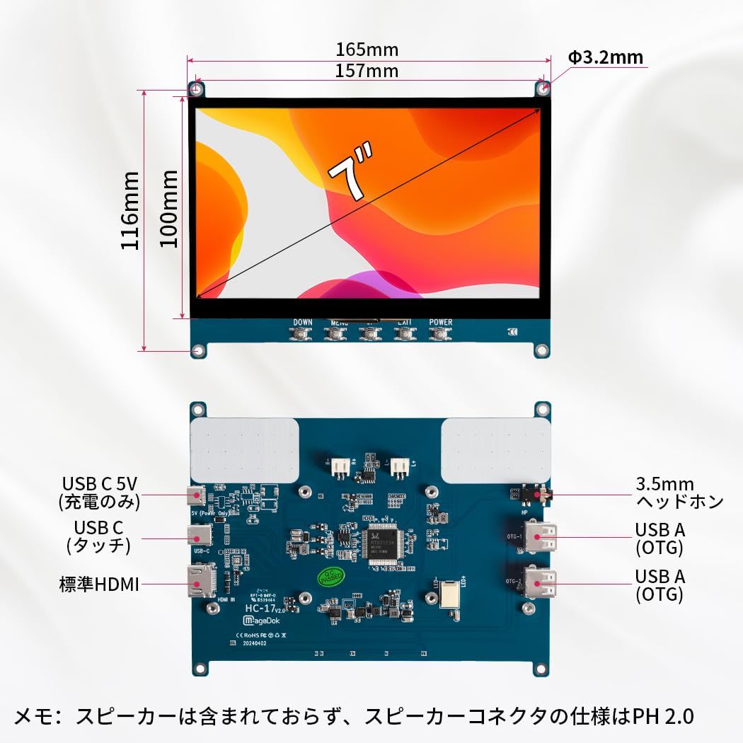7インチ 小型モニター タッチ モバイルモニターIPS 1024 600 高輝度 5 V給電 OTG搭載 小型ディスプレイミニ ディスプレイ PC ラップトップ Rasp Pi用