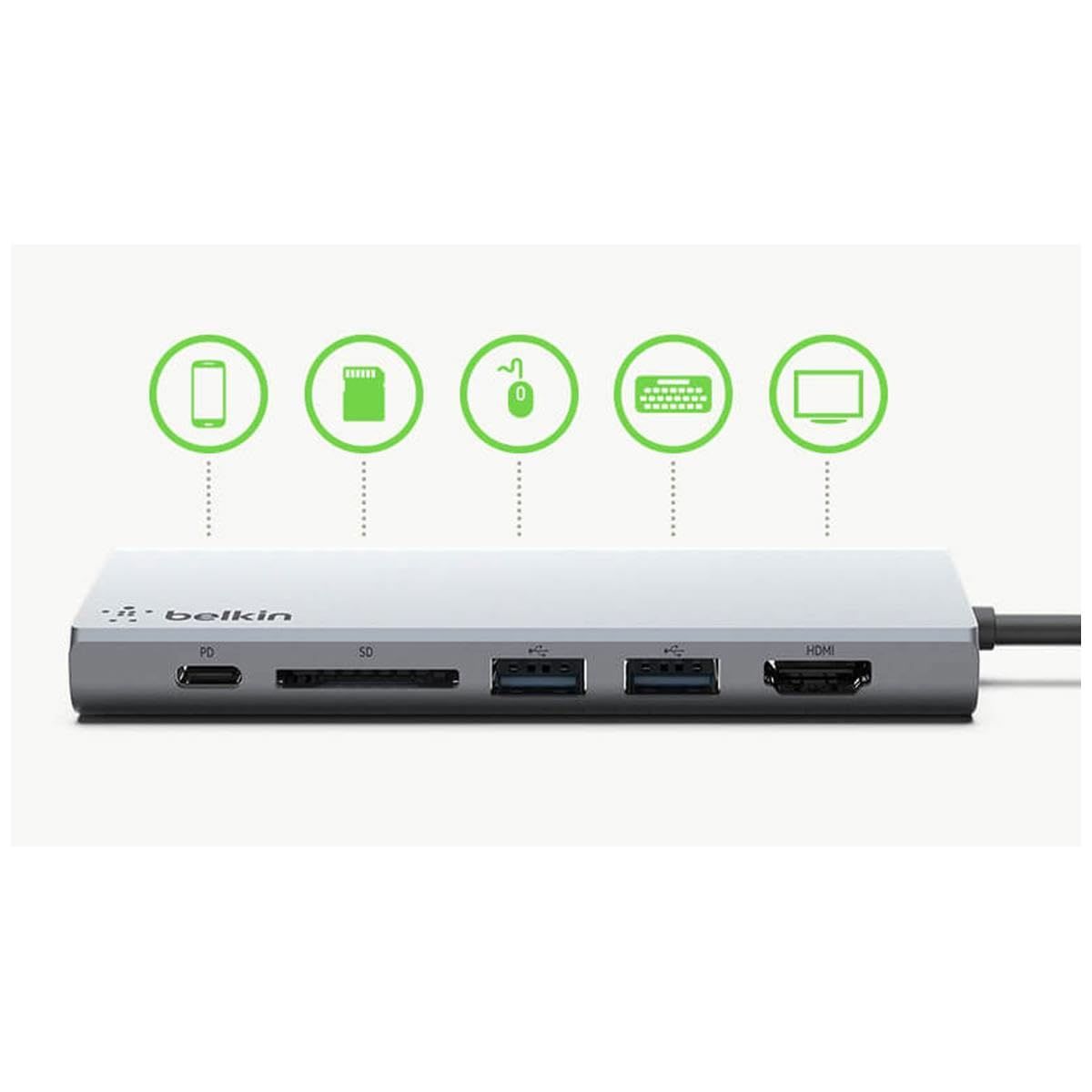 Belkin 6 in 1 USB-C イーサネットハブ USB-C PD 60W 4K HDMI SDカード USB iPad/iPad Pro/iPad mini/MacBook/MacBook Pro/MacBook Air/Windows/Surface/Chromebook 対応 F4U092BTSGY