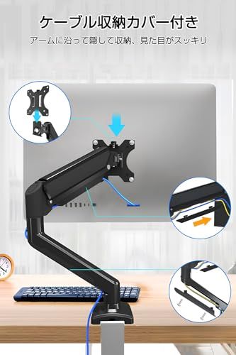 PCモニターアーム17?32インチ対応 耐荷重 2?9 kg対応アルミニウム合金製 ガススプリング式 VESA 75 x mm 100 mm対応 グロメット式 クランプ式 多角度調節 ケープル収納 73537 dc 4