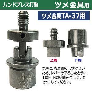 ハンドプレス 打駒 ツメ付き金具 TA 37 幅3 5 mm ツメ金具TA 37用 上駒1下駒1 2パーツ 入 鉄製 焼き加工 丸く仕上がる 巻き込み式 きれいな仕上がり 髪ゴム 紐 まとめる しっかり留まる ウチコマ上駒ネジ規格 JIS規