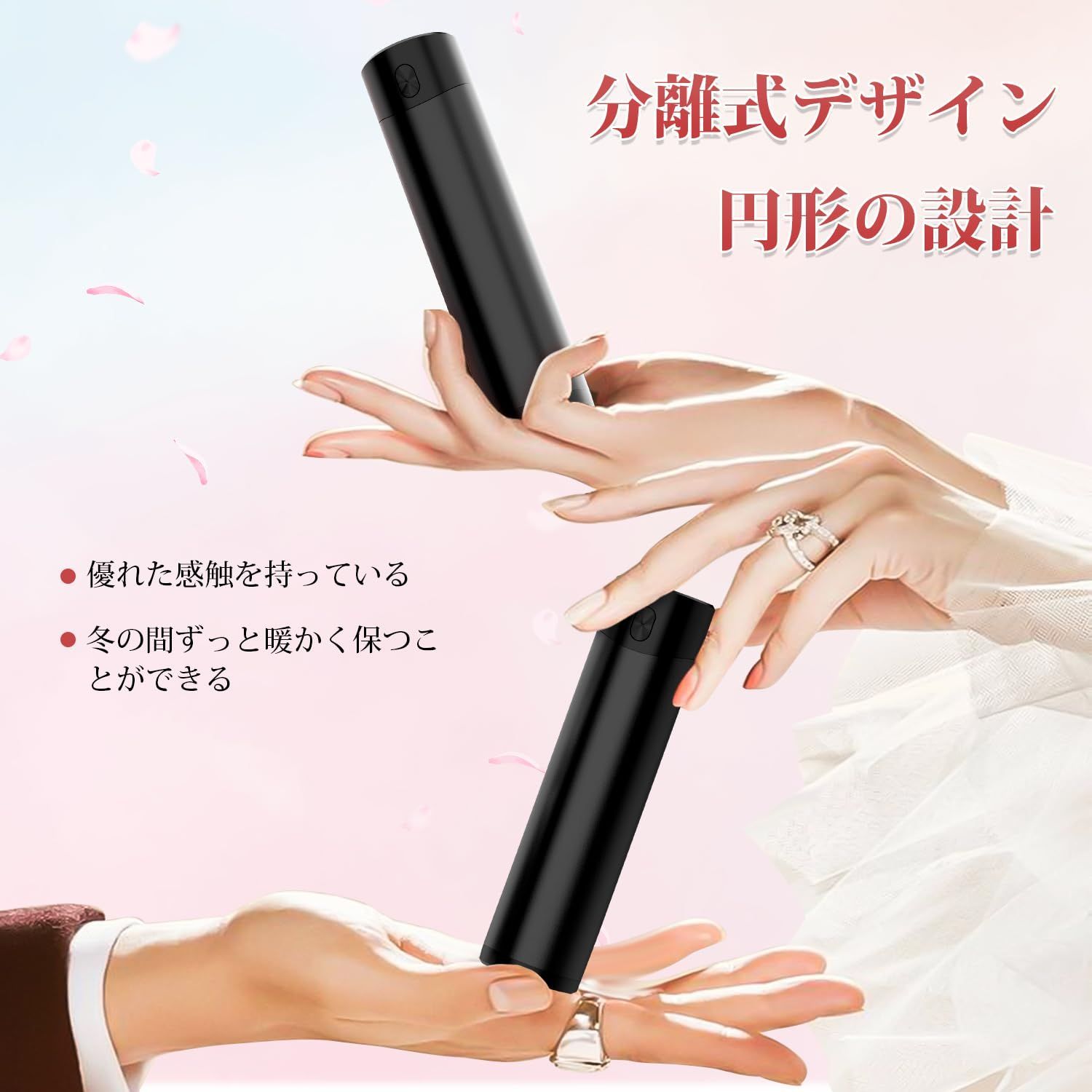 【分離磁気式設計】電子カイロは 創造的な分離式デザインにより、カイロの充電が簡単です。また、電気かいろは2本USB-C充電ケーブル付き、カイロを同時に充電するもでき、充電時間を1本しかない他社と比べて半分短縮、わずか4-5時間で二つとも満電状態になる。
