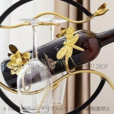 Russel海外インテリア、メルカリshop店のエレガントなデザインのメタル製ワインラック&グラスホルダー。シンプルながらも洗練された装飾が印象的で、どんなインテリアにも調和するスタイルを持っています。ワインボトルとグラス2本を美しく飾ることができ、特別な日を演出するアイテムとして活躍します。その存在感はお部屋にさらなる魅力を添え、ゲストを招く際の話題にもなることでしょう。