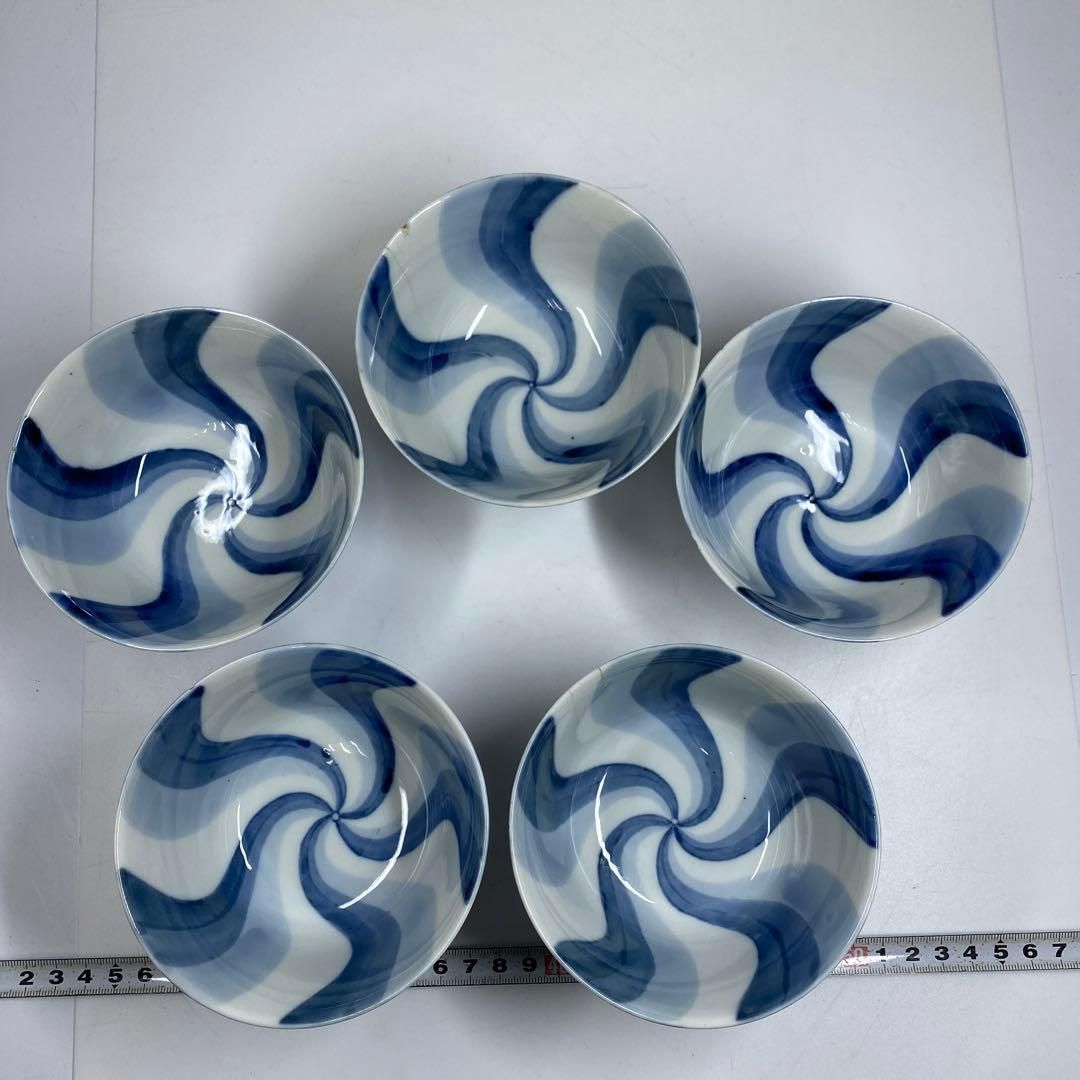 永楽善五郎 染付 捻り画 蓋茶碗 5点 直径11㎝ タエオ 東な7 0125