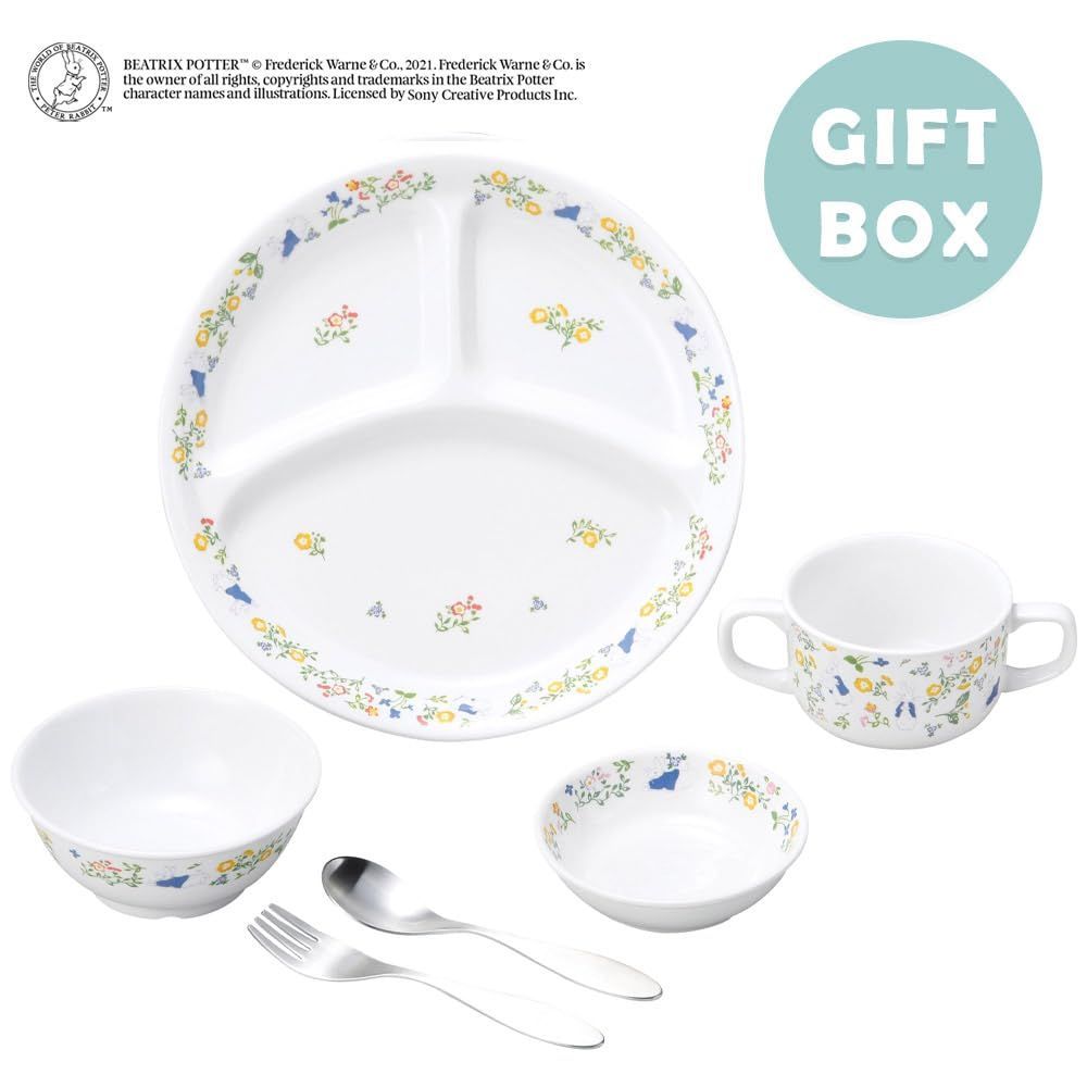 OGISO(おぎそ) ピーターラビット ナチュラルガーデン 強化磁器食器4点&スプーンフォークセット (食洗機・レンジ対応)